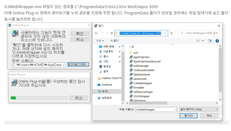 ICAWebWrapper.msi 가 없어 온라인 플러그인을 설치할 수 없다는 에러가 발생