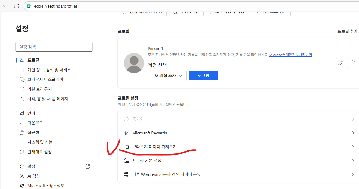 - "브라우저 데이터 가져오기" 선택