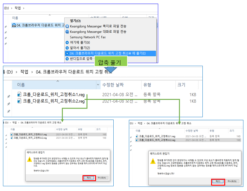 | 3. 레지스트리 2개 파일 각각 클릭합니다. |