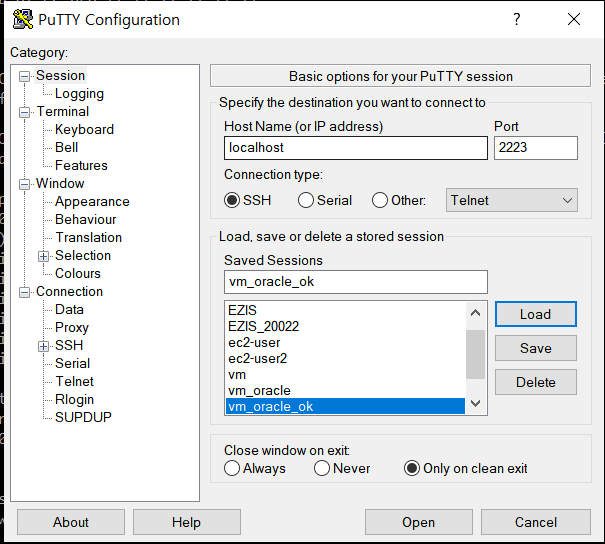| putty 접속 : 2223 port | ![]() |