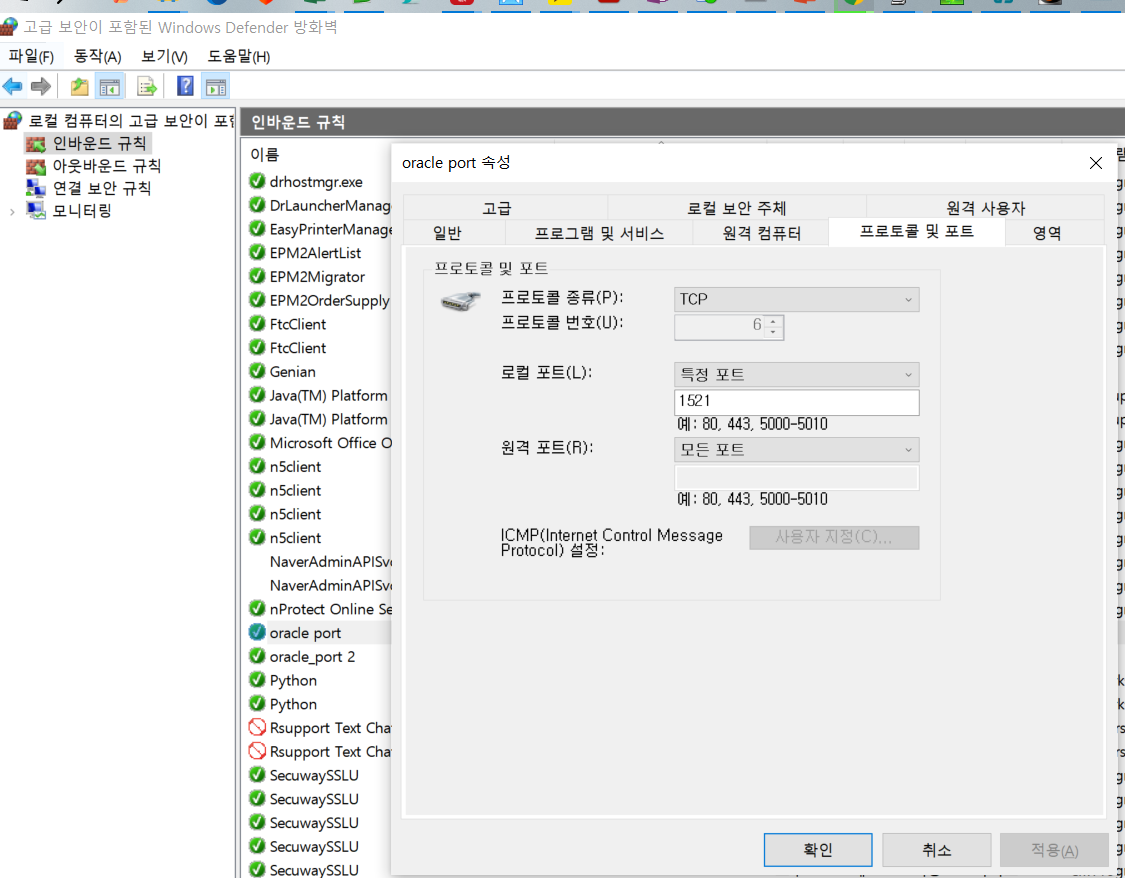 🔍 문제 요약127.0.0.1:1521은 루프백 주소로, VM 내부에서만 접근 가능합니다. 즉, VM 바깥(Windwos PC)에서는 이 포트에 접근할 수 없습니다.✅ 해결 방법1. Oracle Listener가 0.0.0.0 또는 실제 VM IP에 바인딩되도록 설정 변경📍 Oracle Listener 설정 파일 수정VM 내부에서 listener.ora 파일을 열어 다음 내용을 확인하거나 수정해야 합니다: