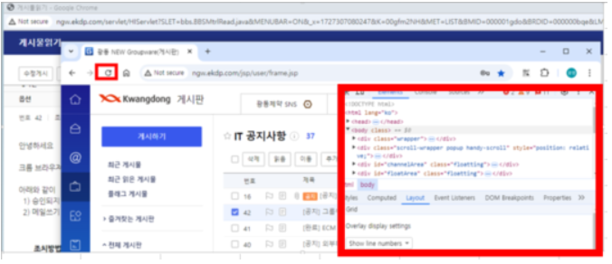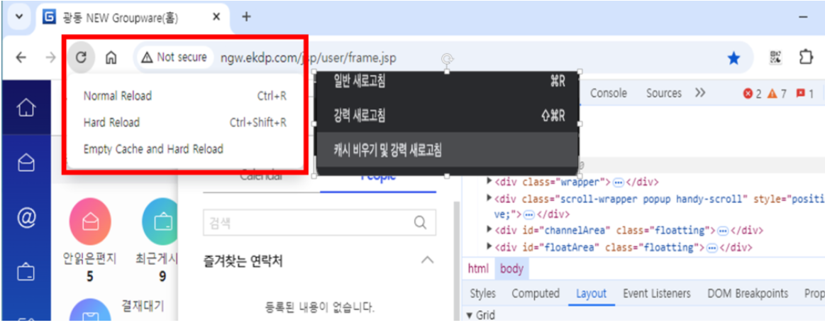 . 브라우저 캐시 비우기 및 강력 새로고침 실행