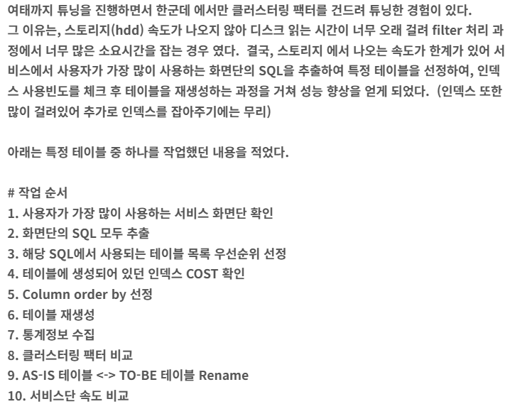 * 클러스터링 팩터를 이용한 튜닝