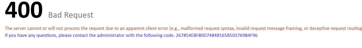HyperText Transfer Protocol (HTTP) 400 Bad Request 응답 상태 코드는 서버가 클라이언트 오류(예: 잘못된 요청 구문, 유효하지 않은 요청 메시지 프레이밍, 또는 변조된 요청 라우팅) 를 감지해 요청을 처리할 수 없거나, 하지 않는다는 것을 의미합니다.